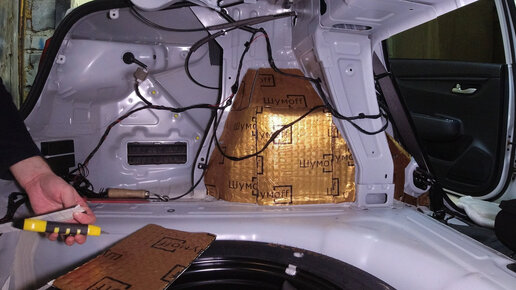 Процесс шумоизоляции задних арок Kia Rio 3.