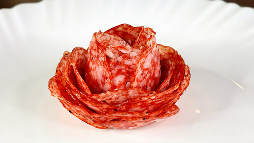 Как красиво в форме розы выложить нарезку колбасы на праздничный стол (особенно актуально к новому году)