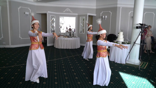 Казашки выдают мелодичный, ритмичный танец для гостей и молодожёнов