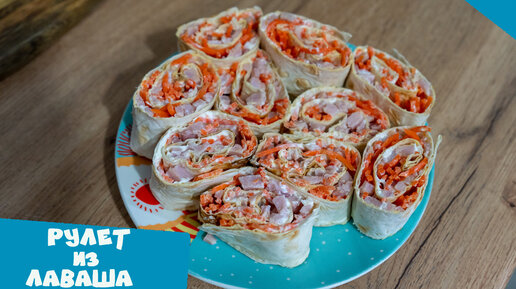Рулет из лаваша с ветчиной и корейской морковкой | Закуска из лаваша за 5 минут