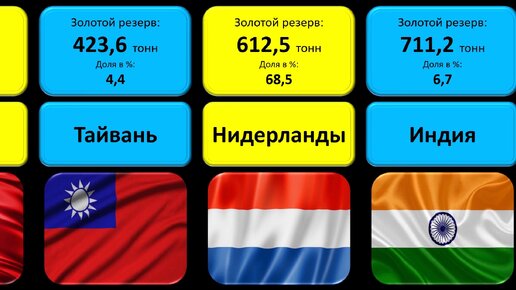 Золотые резервы у государств мира и их доля в общем объеме нац. резервов в %