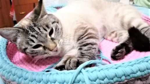 Лежанка для кота из трикотажной пряжи