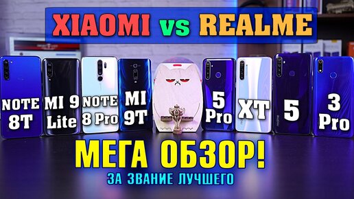 БИТВА ГОДА! Xiaomi VS Realme! Mi 9T, Mi 9 Lite, Redmi Note 8 Pro / T, Realme XT, 5 Pro, 5, 3 Pro.