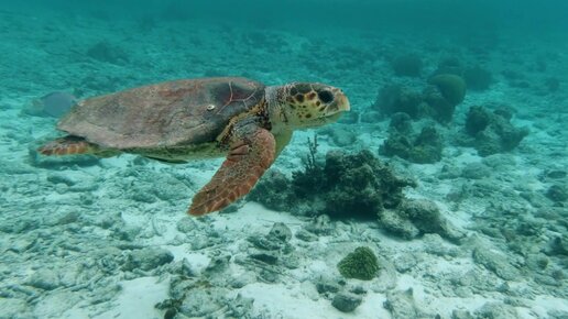 Морская черепаха плывет под водой