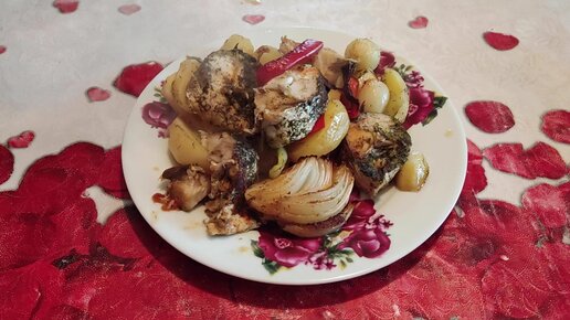 Свежемороженый хек запеченный с овощами