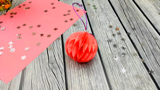 Сделала из бумаги красивую игрушку для декора новогодней елки