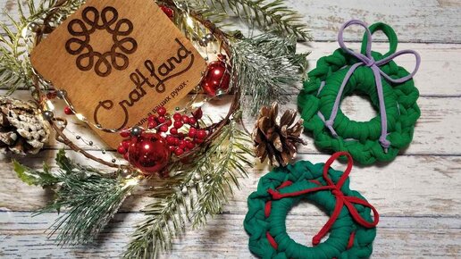 Мастер-класс "Новогодний мини-венок". Вяжется только из пряжи, без дополнительных основ.