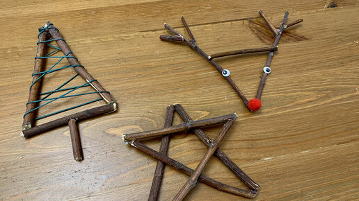 3 елочные игрушки своими руками. Елка. Звезда. Олень. Новогодние поделки из природных материалов.