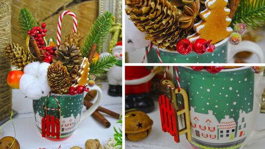 Показываю, как сделать атмосферную Новогоднюю композицию в чайной кружке! Идея Новогоднего декора для кухни!