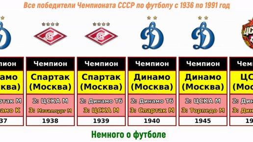 Все победители Чемпионата СССР по футболу с 1936 по 1991 год