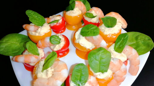 Делюсь лёгким рецептом закуска с помидорами и креветками
