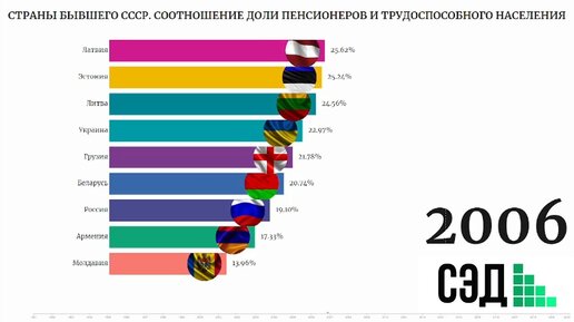 Страны бывшего СССР. Соотношение доли пенсионеров и трудоспособного населения