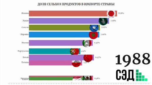 Доля сельхоз продуктов в импорте страны