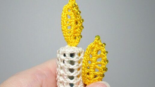Пришиваю вязаное крючком пламя свечи к вязаной свече