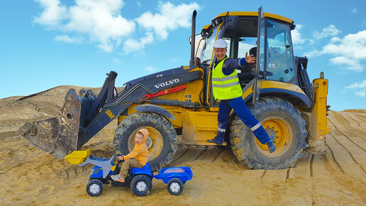 Экскаватор сломался, малыш приехал на помощь