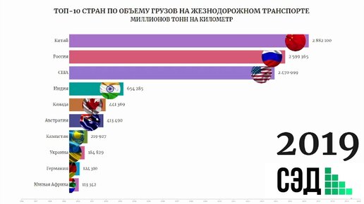 Топ-10 стран по объему грузов на железнодорожном транспорте