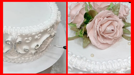 Интересная идея оформления торта вензелями и розами
