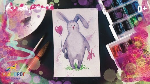 Как нарисовать милого зайчика акварелью . Учимся рисовать акварелью быстро и легко. Уроки рисования.