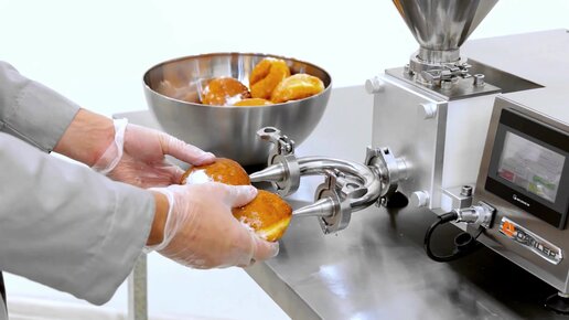 Как работает автоматический шестеренчатый шприц-дозатор? Наполняем джемом пончики и круассаны!
