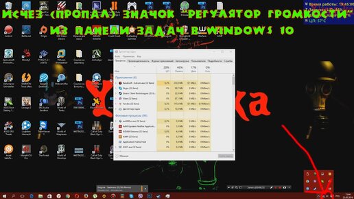 Исчез (пропал) значок " Регулятор громкости" из Панели задач в Windows 10