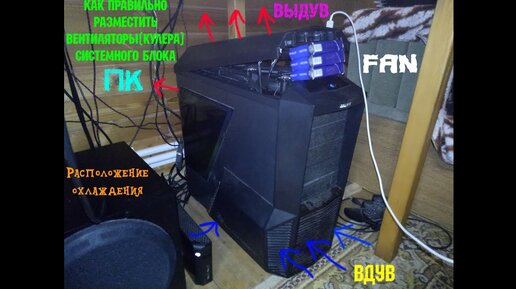 Как правильно разместить вентиляторы(кулера) системного блока на ВДУВ и на ВЫДУВ