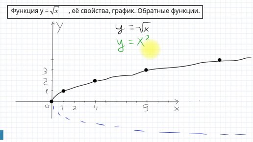 Функция Y=sqrt X квадратный корень из Х. График, свойства. Обратная функция к У= Х в квадрате