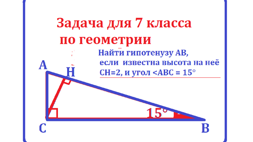Задача для 7 класса по геометрии. Найти гипотенузу АВ по высоте на неё и острому углу