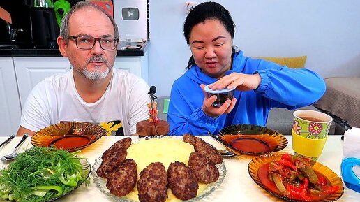 МУКБАНГ ПЮРЕШКА С КОТЛЕТКОЙ, САЛАТ и ОВОЩИ