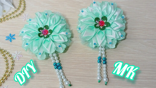 Бантики из атласной ленты, фатина и бусин. Нежное сочетание цветов и приятный результат.