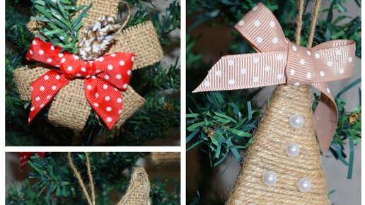 3 идеи новогодних игрушек своими руками | ёлочные игрушки из джутовой нити и мешковины
