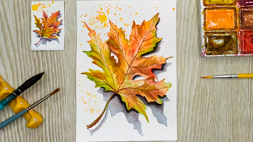 Как нарисовать осенний лист акварелью поэтапно. Акварель для начинающих