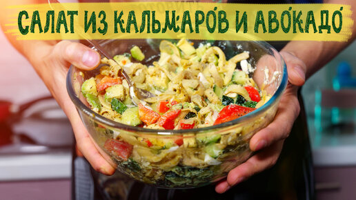 Салат из кальмаров и авокадо без майонеза.