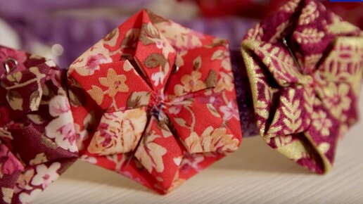 Пэчворк-идея. Складываем оригами из ткани. Можно и на ёлку повесить!