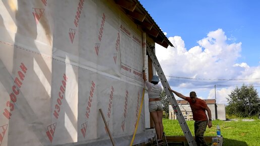 Монтаж ветро и влагозащитной мембраны на каркасные стены. Каркасная баня День 25.