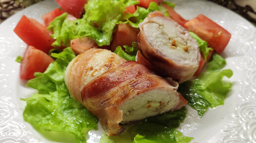 Сочные куриные рулетики с сыром в беконе - сытное блюдо для всей семьи