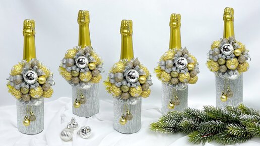 ОФОРМЛЕНИЕ БУТЫЛКИ ШАМПАНСКОГО. Подарки на Новый Год. Декор своими руками. Съемная конструкция