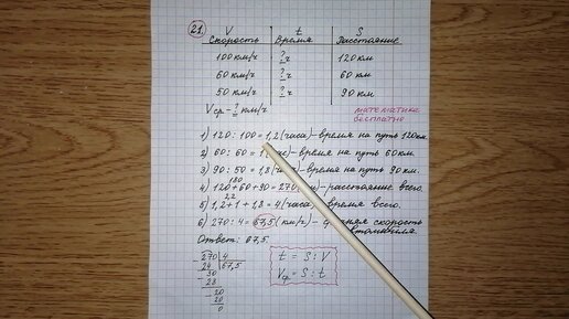 21) Первые 120 км автомобиль ехал со скоростью 100 км/ч, следующие 60 км - со скоростью 60 км/ч, а затем 90 км - со скоростью