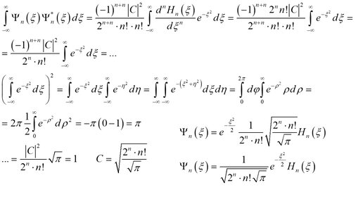 Ортогональность и нормировка волновой функции кванового осциллятора