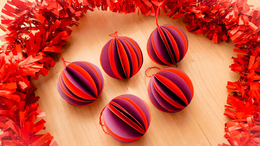 Самые простые двухцветные шарики из бумаги | Шары на ёлку из бумаги | Елочные игрушки из бумаги