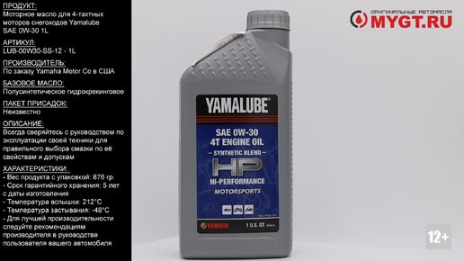 Моторное масло для 4-тактных моторов снегоходов Yamalube SAE 0W-30 1L #ANTON_MYGT
