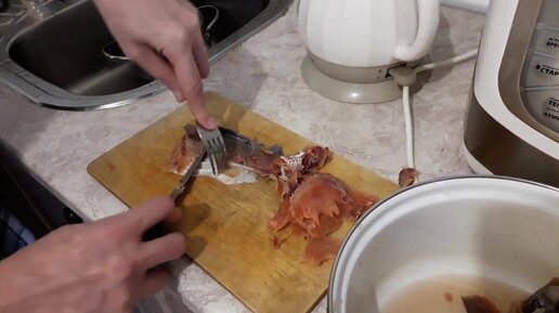 Как порезать соленую красную рыбу на кусочки.