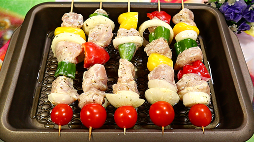 Вкусный шашлычок из курицы и овощей прямо в духовке. Очень вкусно и красиво!