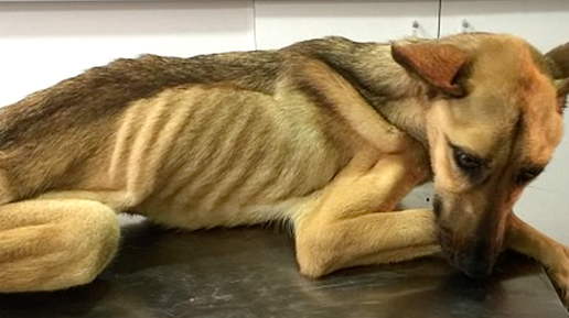 Кожа да кости-все что осталось от собаки.Невероятная история преображения щенка