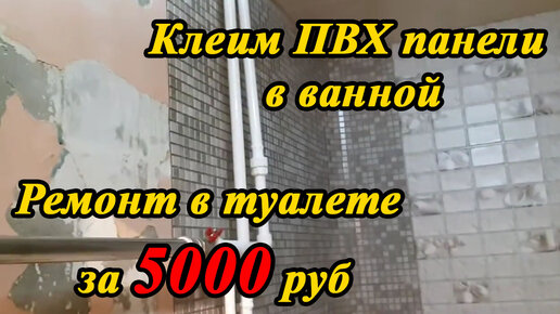 Клеим ПВХ панели в ванной Как клеить плитку пвх Ремонт в туалете за 5 т.р. Хрущевка Ремонт туалета своими руками Ремонт квартиры