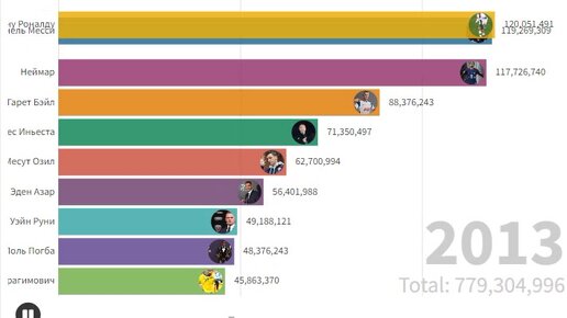 Рейтинг самых богатых футболистов мира с 2010 по 2021 год