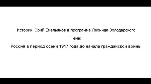 Россия в период осени 1917 года до начала гражданской войны. Юрий Емельянов