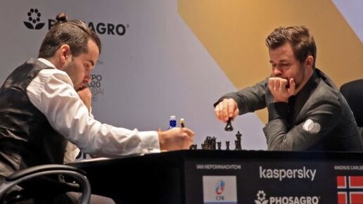 1-я партия матча КАРЛСЕН - НЕПОМНЯЩИЙ: претенденту белыми пришлось добиваться ничьей