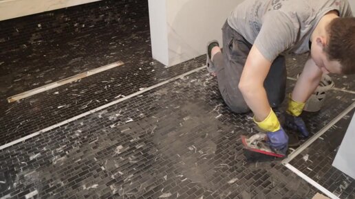 Укладка керамогранита и мозаики с подсветкой окончание работы.