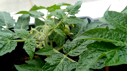 Эксперимент на подоконнике продолжается. У меня радость – появился первый плод томатов черри