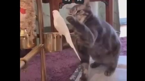 Киска делает массаж попугаю! Очень Милая обстановка! Котик Профессиональный массажист)